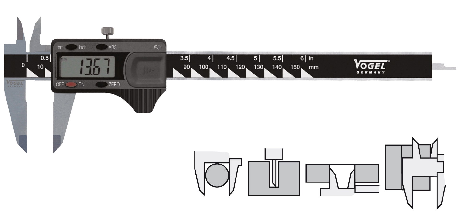 Der Messschieber hat viele verschiedene Möglichkeiten um etwas aus zu messen.